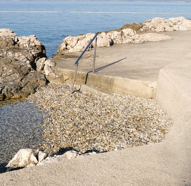 Tretji dan sva si vzela tako bolj na izi, avto priklopila na polnilnici v Novem Vinodolskem in dopoldanske ure presončila in preplavala na bližnji betonirani plaži. Voda je bila izjemno čista, kar mi je bilo nenavadno za jadransko mesto. Starejši domačinki sta mi pojasnili, da imajo že vrsto let lepo urejeno kanalizacijo. Čistilne naprave izpuščajo v morje le očiščeno vodo. Pravita, da se sicer sem in tja še vedno zgodi, da predvsem kateri od hotelov še vedno uporabi stare kanale, kar se potem kaj hitro pozna na kakovosti kopalne vode v bližini izpusta.